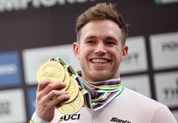 Dutch sprint king Harrie Lavreysen became the first cyclist to win four gold medals...