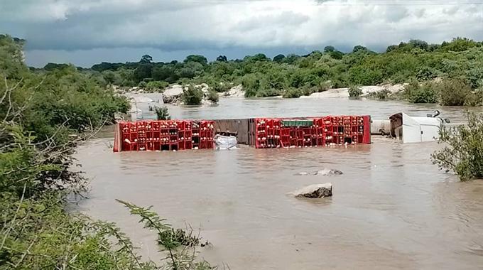 An Ingwebu Breweries delivery truck was swept into the swollen Nkankezi River in Insiza District after the driver attempted to cross a flooded bridge, authorities have confirmed.